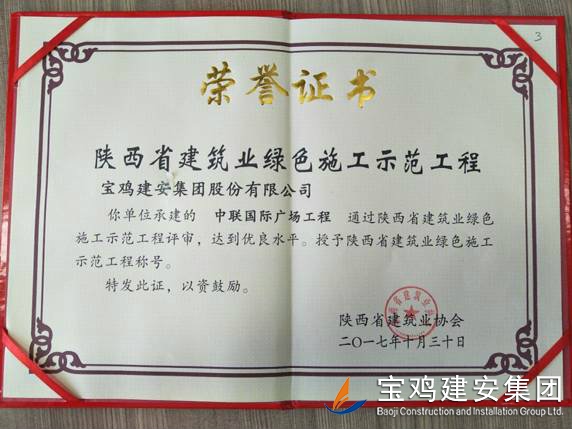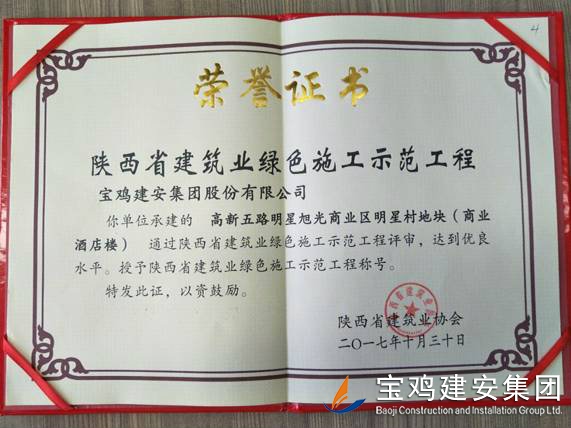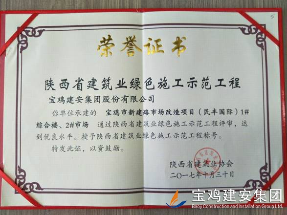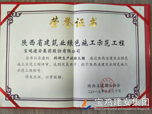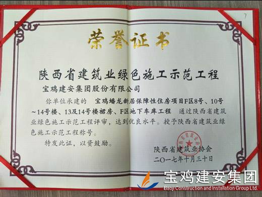 2018年1月26日在西安召開了陜西省建筑業(yè)協(xié)會(huì)第六屆二次理事會(huì)議,我公司承建的科研生產(chǎn)試驗(yàn)大樓、寶雞蟠龍新居SF05標(biāo)段,高新五路明星佳苑、新建路市場改造項(xiàng)目(民豐國際)、中聯(lián)國際廣場項(xiàng)目,在2017年度綠色施工評(píng)審過程中,達(dá)到優(yōu)良水平,被授予陜西省建筑業(yè)綠色施工示范工程稱號(hào)。 此次榮譽(yù)的獲得離不開公司各職能部室的指導(dǎo)與項(xiàng)目部的辛勤努力,項(xiàng)目部能緊跟建筑行業(yè)發(fā)展的大方向,不斷加強(qiáng)綠色施工過程管理的學(xué)習(xí),在施工過程中圍繞著“四節(jié)一環(huán)?!崩砟?,堅(jiān)持走節(jié)能降耗,增效降本,可持續(xù)發(fā)展的施工道路,最終取得了可喜的成績。 公司綠色施工整體水平近年來得到顯著提高,希望各項(xiàng)目部在2018年的施工過程中,以文明施工,綠色施工標(biāo)準(zhǔn)嚴(yán)格要求自己,力爭在施工管理方面取得更高的成績。