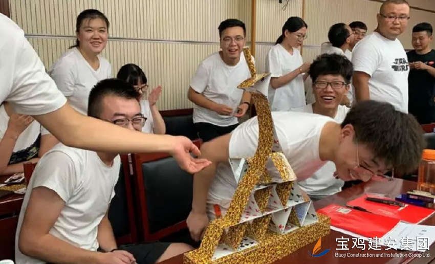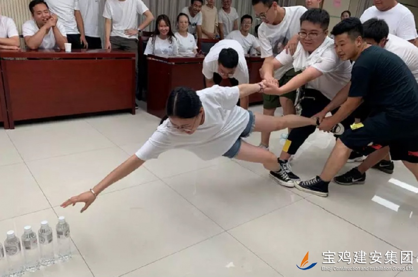 培訓(xùn)期間,公司組織了團(tuán)隊(duì)拓展活動(dòng),本次拓展分8支戰(zhàn)隊(duì),結(jié)合無領(lǐng)導(dǎo)小組討論、木桶原理和管理游戲等方法,進(jìn)行搭紙牌、攻城略地、隔空取水和乒乓快跑四項(xiàng)活動(dòng)。在團(tuán)隊(duì)拓展中,各隊(duì)隊(duì)員都充分發(fā)揮自己的聰明才智,展示自己的才華,合理分工協(xié)作,挑戰(zhàn)一個(gè)個(gè)看似不可能完成的任務(wù)。通過四項(xiàng)活動(dòng)的舉行及點(diǎn)評(píng),團(tuán)隊(duì)協(xié)作的概念逐步深入員工腦海,深入淺出地讓員工明白了1+1>2的道理,同時(shí)也是在團(tuán)隊(duì)拓展的活動(dòng)當(dāng)中,人力資源部發(fā)現(xiàn)了許多名具有領(lǐng)導(dǎo)力的新員工,他們?cè)诨顒?dòng)中參與度高,組織有序,影響力強(qiáng),最終帶領(lǐng)自己的團(tuán)隊(duì)取得了優(yōu)良的成績。