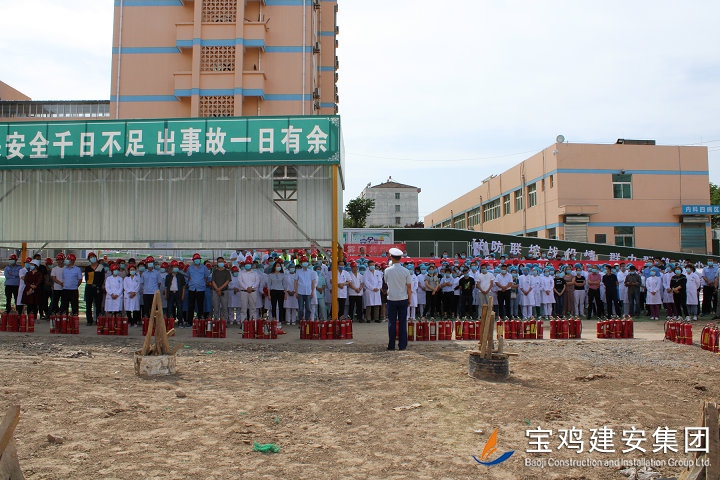 鳳翔縣醫(yī)院3號住院樓工程是全市重點建設項目之一,也是省、市、縣各級領導密切關注的民生工程。本項目建設地址位于縣醫(yī)院內(nèi),占地面積2100平方米,總建筑面積為45663.98平方米,框架結構二十六層(其中地下兩層,地上二十四層),建筑高度97.1米,設計使用年限為50年,概算總投資1.98億元。項目自開工以來,受到鳳翔縣醫(yī)院領導高度重視和大力支持。通過此次消防實戰(zhàn)演練,項目部將更為嚴格的開展工地消防安全管理工作,重點做好以下三項工作: