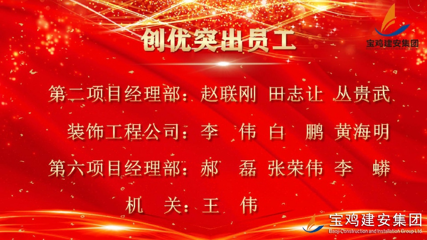 2020年度寶雞建安集團公司先進單位