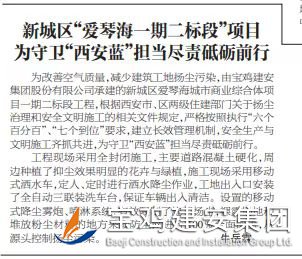 為改善空氣質(zhì)量,減少建筑工地揚塵污染,由寶雞建安集團股份有限公司承建的新城區(qū)愛琴海城市商業(yè)綜合體項目一期二標(biāo)段工程,根據(jù)西安市、區(qū)兩級住建部門關(guān)于揚塵治理和安全文明施工的相關(guān)文件規(guī)定,嚴(yán)格按照執(zhí)行“六個百分百”、“七個到位”要求,建立長效管理機制,安全生產(chǎn)與文明施工齊抓共進,為守衛(wèi)“西安藍”擔(dān)當(dāng)盡責(zé)砥礪前行。
