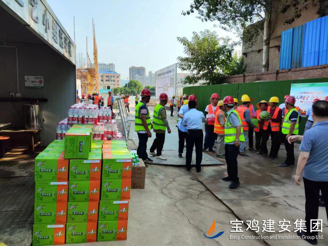 活動(dòng)現(xiàn)場,高新區(qū)管委會(huì)領(lǐng)導(dǎo)親自將西瓜、飲料、純凈水、藿香正氣水等多種防暑降溫用品送到了現(xiàn)場的廣大員工手中,向大家三伏天堅(jiān)守在一線崗位表示感謝和問候。