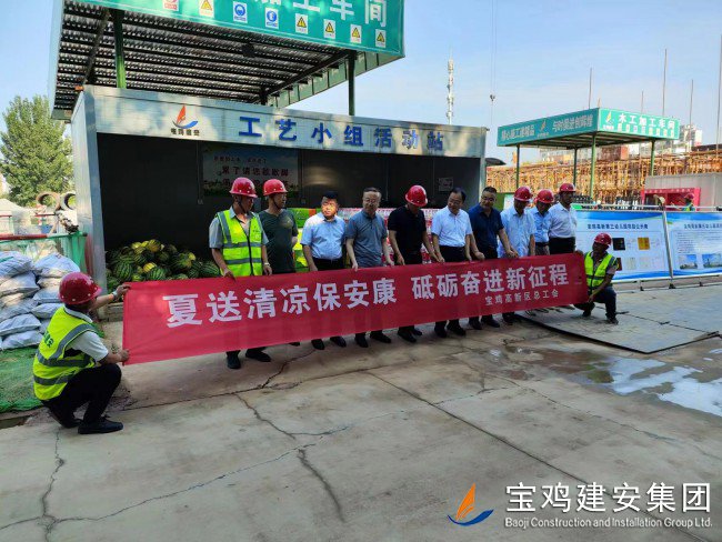 7月18日上午,寶雞高新區(qū)管委會(huì)黨工委委員、管委會(huì)副主任楊海翔,高新區(qū)總工會(huì)主席李廣強(qiáng),區(qū)教育系統(tǒng)黨委書記、教育體育局局長唐宏,副局長劉輝等一行領(lǐng)導(dǎo),前往建安集團(tuán)承建的寶雞高新第三幼兒園建設(shè)項(xiàng)目工地,走訪慰問一線員工,開展“夏送清涼”活動(dòng)。
