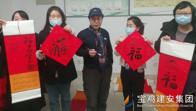 “虎嘯傳捷報,玉兔迎春暉”,在癸卯新春即將到來之際,公司工會特邀我市著名書畫家、篆刻家、寶雞印社名譽(yù)社長、寶雞市直機(jī)關(guān)書畫協(xié)會副會長兼秘書長張寶文老師蒞臨建安大廈,為廣大員工精心繪制生肖畫、書寫新春聯(lián),將春節(jié)的喜慶與祥和及時送到了廣大員工的身邊...... “虎嘯傳捷報,玉兔迎春暉”,在癸卯新春即將到來之際,公司工會特邀我市著名書畫家、篆刻家、寶雞印社名譽(yù)社長、寶雞市直機(jī)關(guān)書畫協(xié)會副會長兼秘書長張寶文老師蒞臨建安大廈,為廣大員工精心繪制生肖畫、書寫新春聯(lián),將春節(jié)的喜慶與祥和及時送到了廣大員工的身邊...... “萌萌噠”的玉兔挑著燈籠歡笑著,蹦跳著,燈籠上系著鞭炮、掛著糖葫蘆、閃著福星,飄逸灑脫的福字和“諸事和順、兔年幸?!钡募檎Z與英語文“Happy new year”“Best wishes”中西合璧、巧妙結(jié)合,將辭舊迎新的節(jié)慶氣氛濃縮在一張張中國紅的斗方宣紙與節(jié)日掛歷上,濃濃的年味撲面而來,帶給大家無盡的喜悅與祝?!?/div>